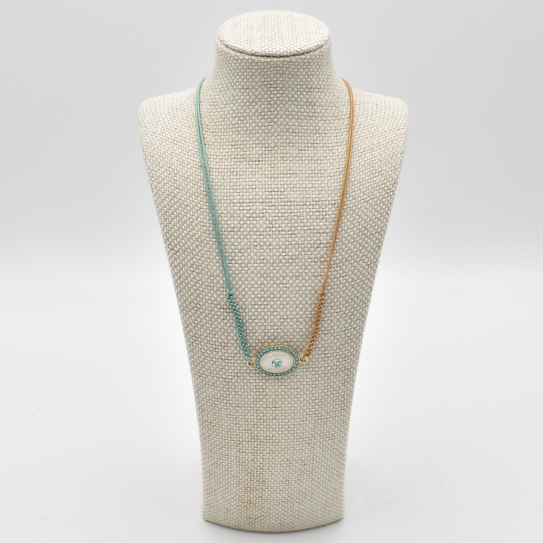Χειροποίητο κολιέ από κράμα χωρίς νικέλιο, επικαλυμμένο με χρυσό, κρυστάλλους Swarovski και μητέρα του μαργαριταριού.