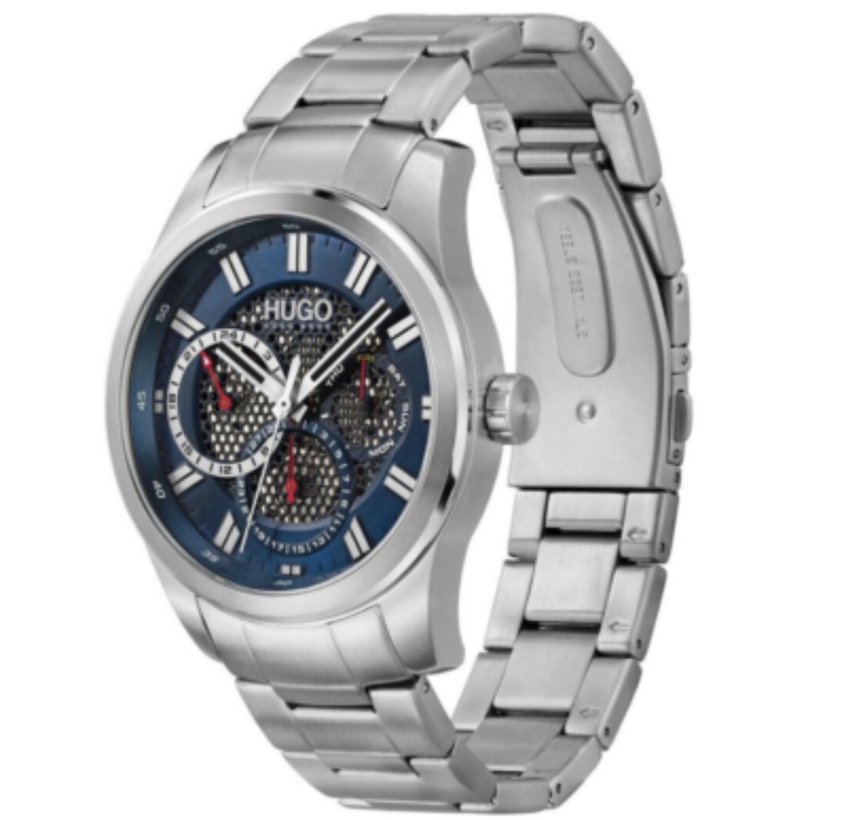 The Boss 1530191 men’s chronograph watch features a blue dial that adds depth and character while maintaining a clean, balanced layout. The chronograph subdials are subtly integrated, offering functionality without overwhelming the design.