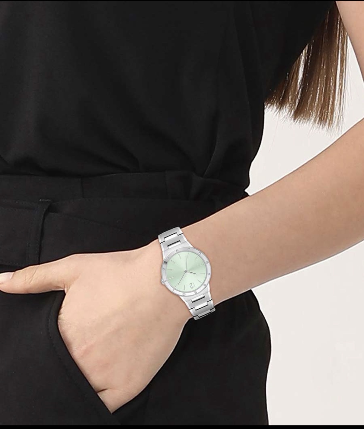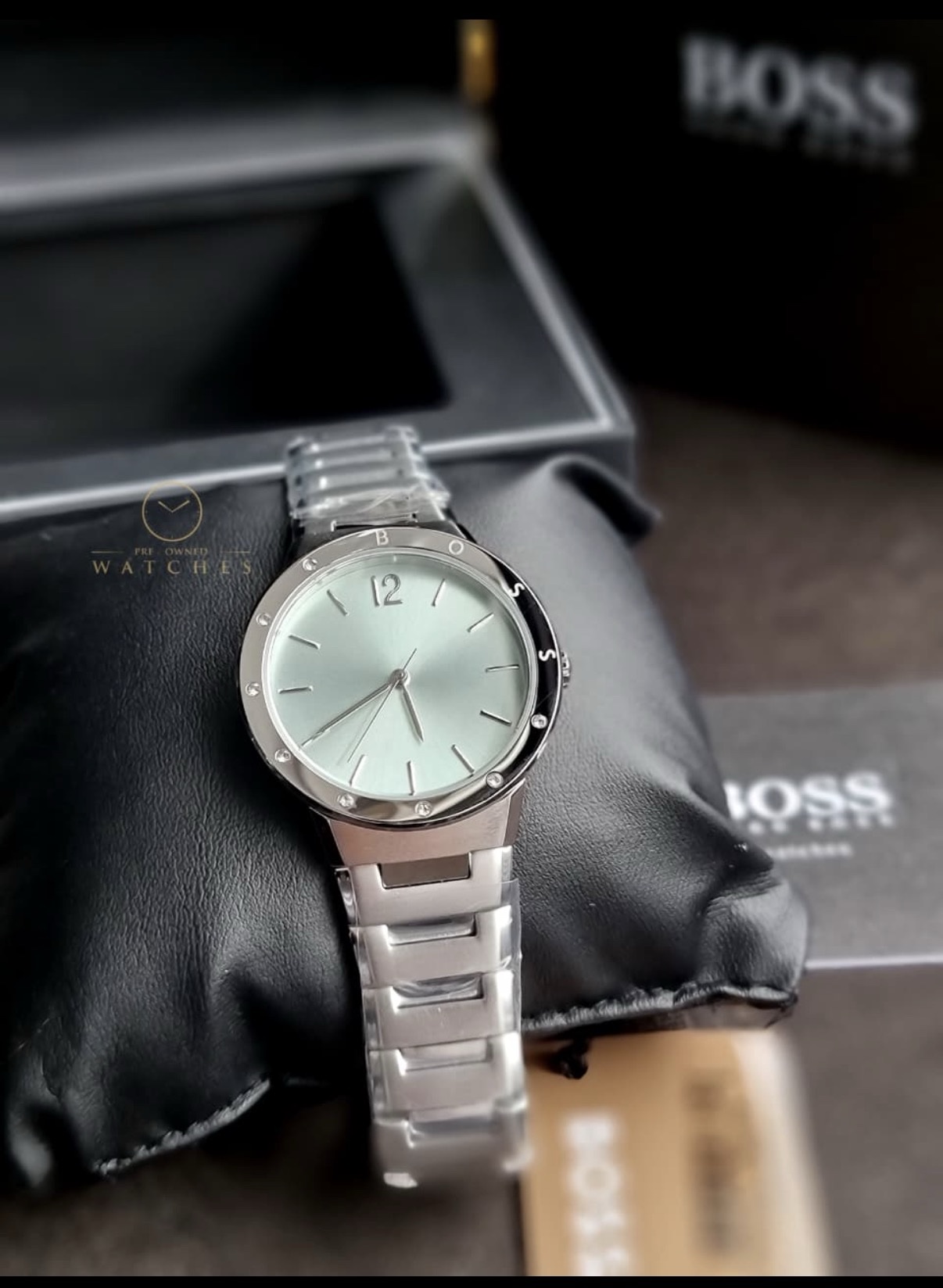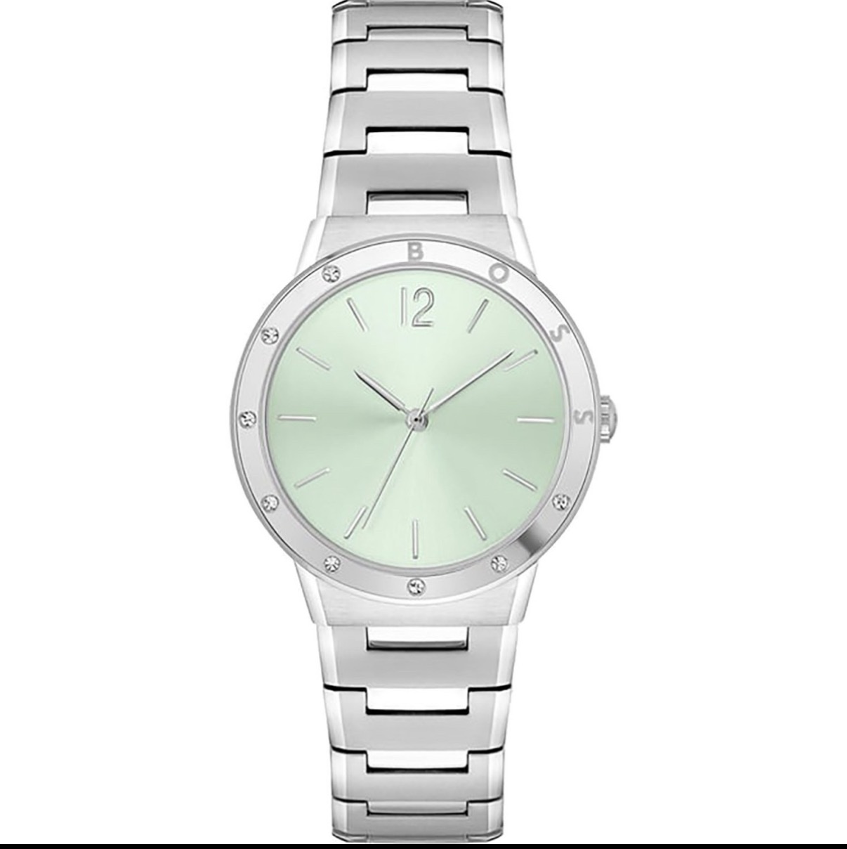 Minimal design with a refined fashion attitude, the Boss 1502716 is a modern women’s watch that balances elegance and everyday versatility. Its refreshing mint green dial adds a contemporary touch, while the polished stainless steel case and bracelet deliver a timeless, urban aesthetic. Crystal hour markers on the bezel subtly elevate the design, making it ideal for both daywear and evening looks.