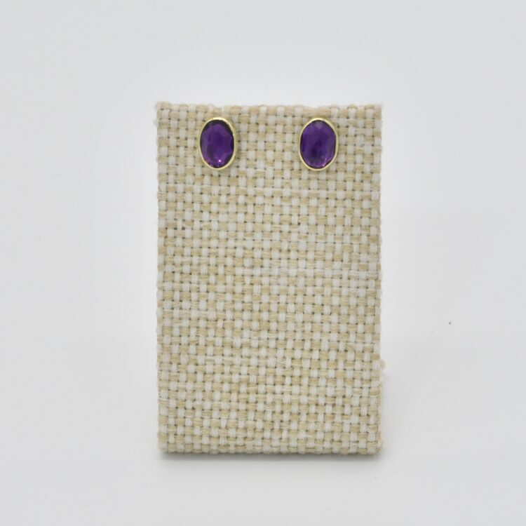 A beautiful pair of earrings set in sterling silver 925° and yellow gold 18k(750°) with natural oval Amethyst.