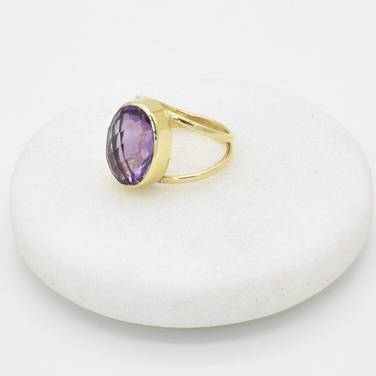 A beautiful ring set in yellow gold 18k(750°) with natural Amethyst.