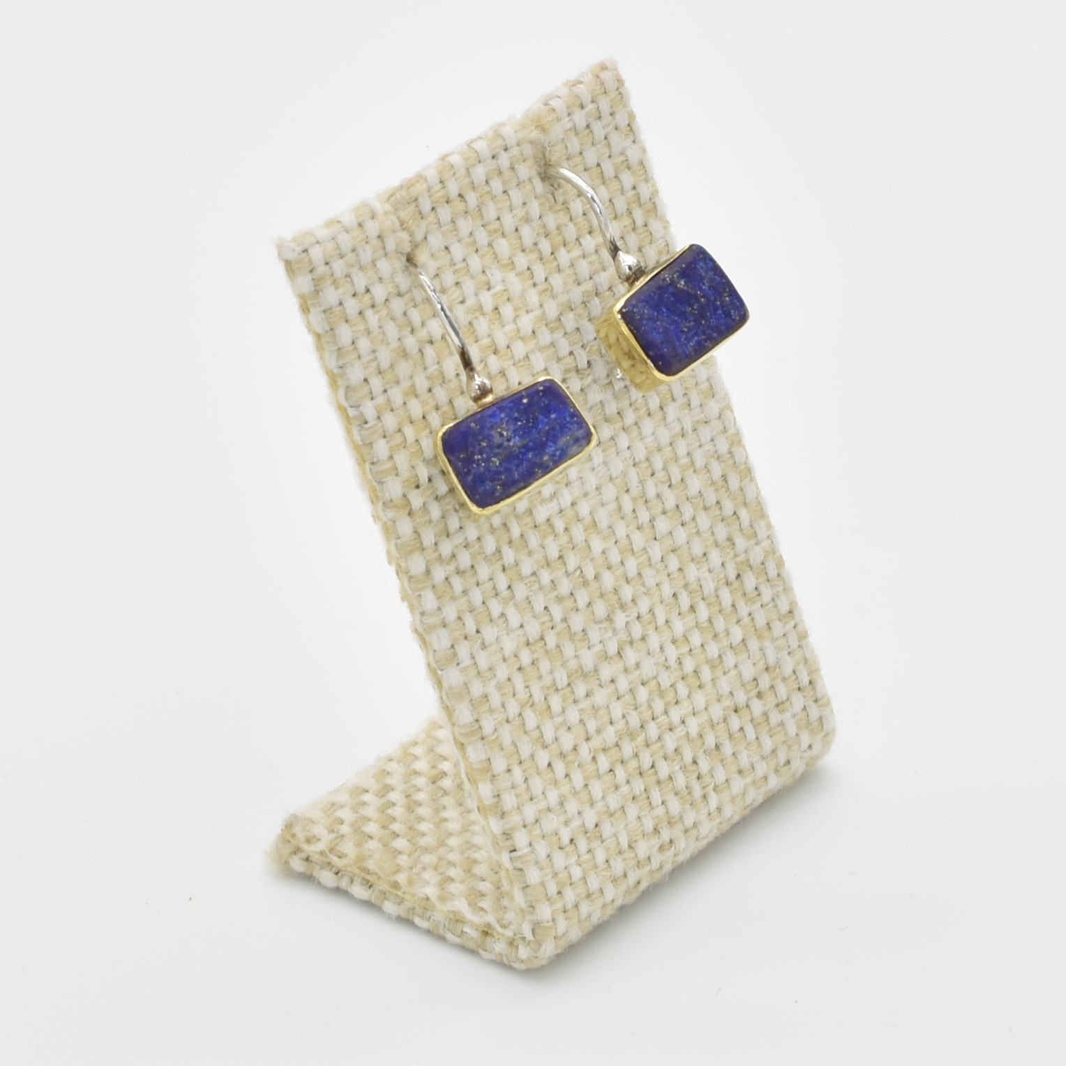Handmade pair of hanging earrings set in sterling silver 925° & 18k(750°) yellow gold with the finest Lapis Lazzuli, coming from the Hindu Kush mountains.