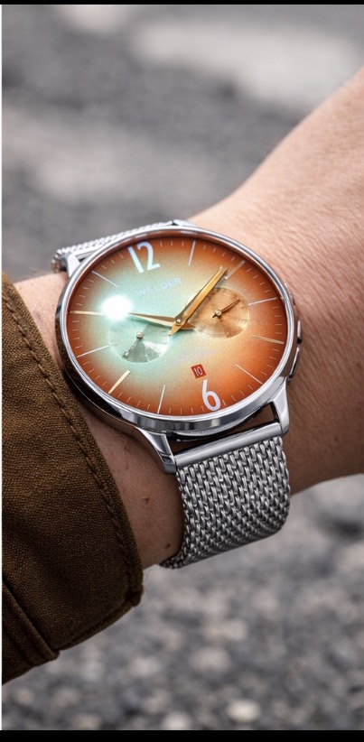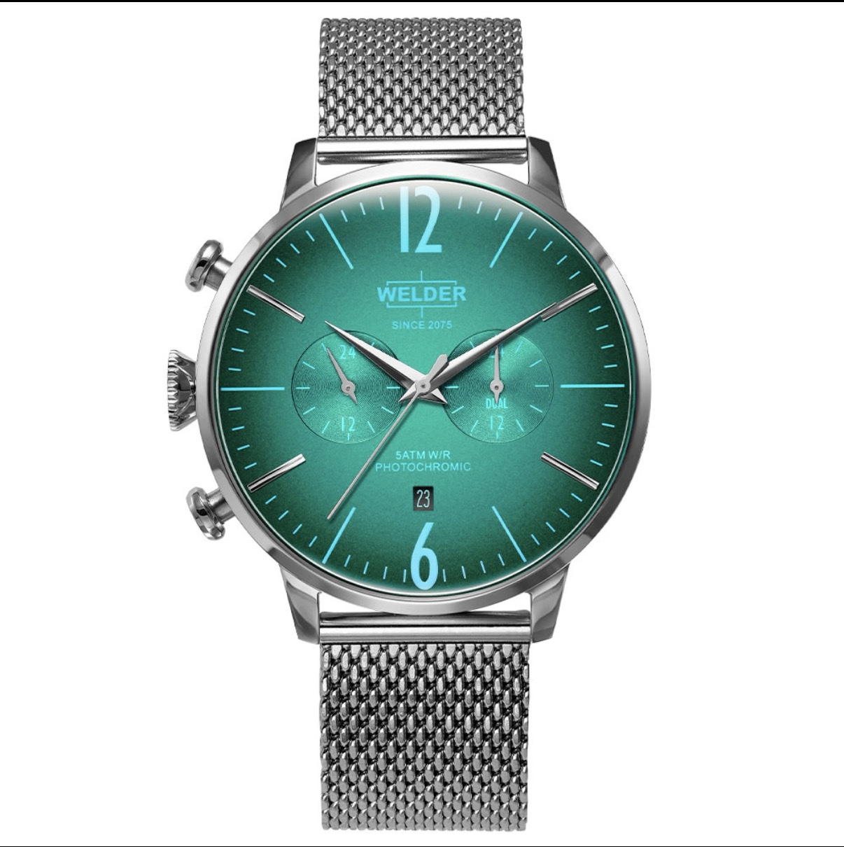 The Welder WWRC1002 continues the brand’s commitment to breaking traditional watchmaking rules. Its photochromic dial reacts dynamically to light, shifting between cool turquoise tones and warm bronze shades, creating a constantly changing visual presence on the wrist. No two moments look the same.