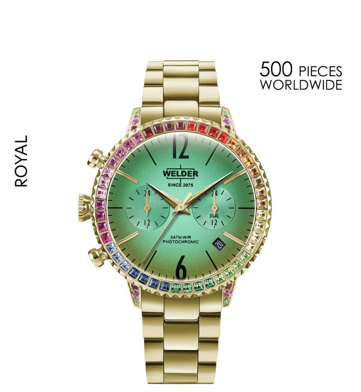 Designed as a limited release, this timepiece elevates Welder’s signature aesthetic into a refined, feminine statement. The gold-tone stainless steel case and bracelet frame a distinctive photocromic dial that subtly changes tone depending on light exposure, creating a dynamic and ever-evolving look.