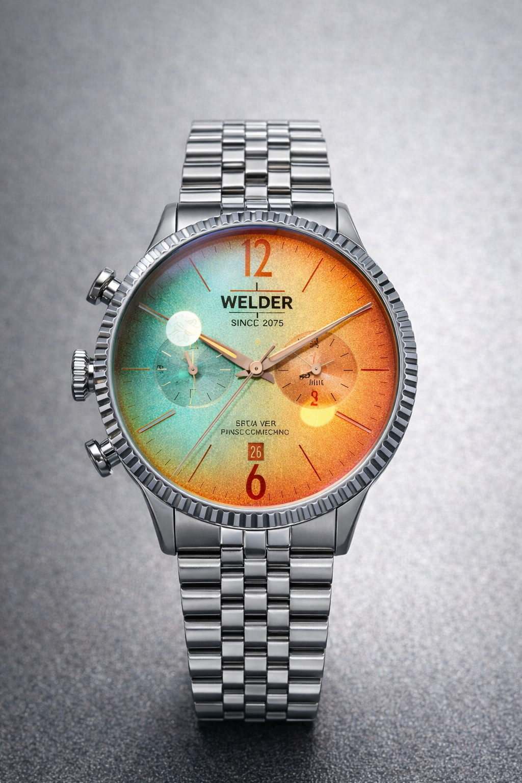 A defining signature of Welder watches is the left-side crown placement. This unconventional configuration breaks with traditional horology norms, improving wearing comfort while reinforcing the brand’s non-conformist design philosophy.